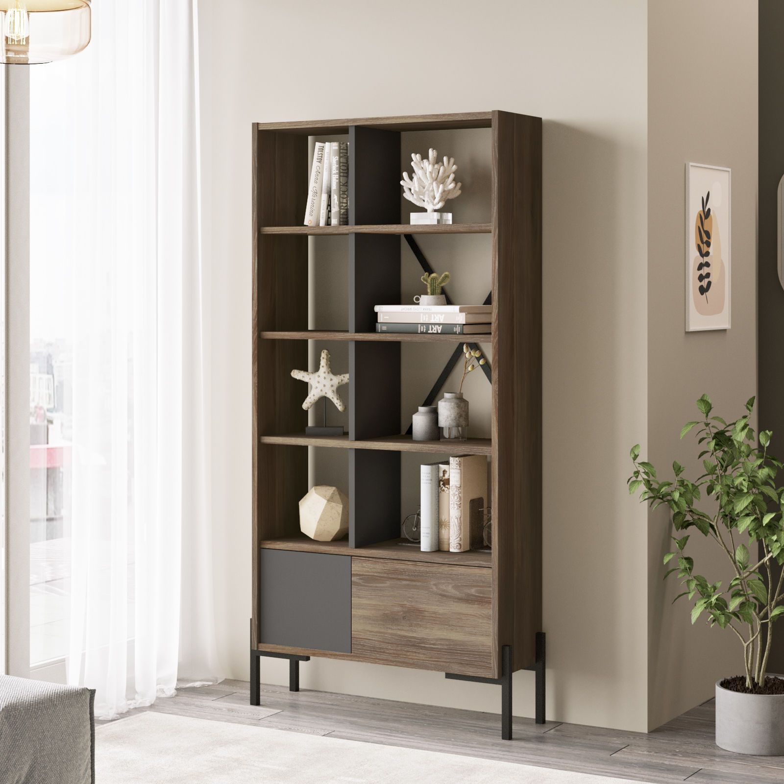 Bruno bokhylla - Brun/antracit