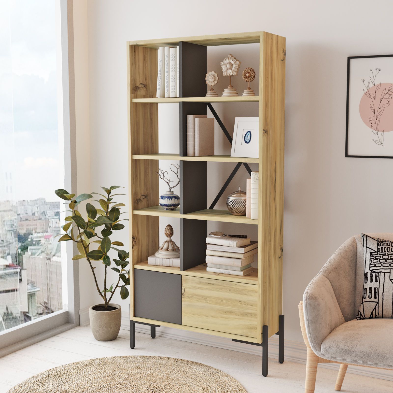 Bruno bokhylla - Felt/antracit