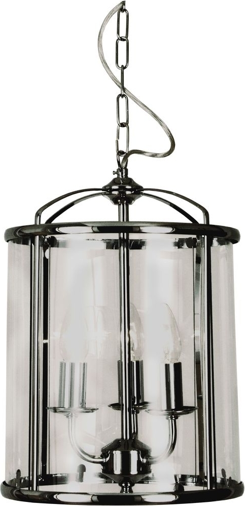 Taklampa i metall med kromat utförande och klarglas. Lätt upphängning i tak.