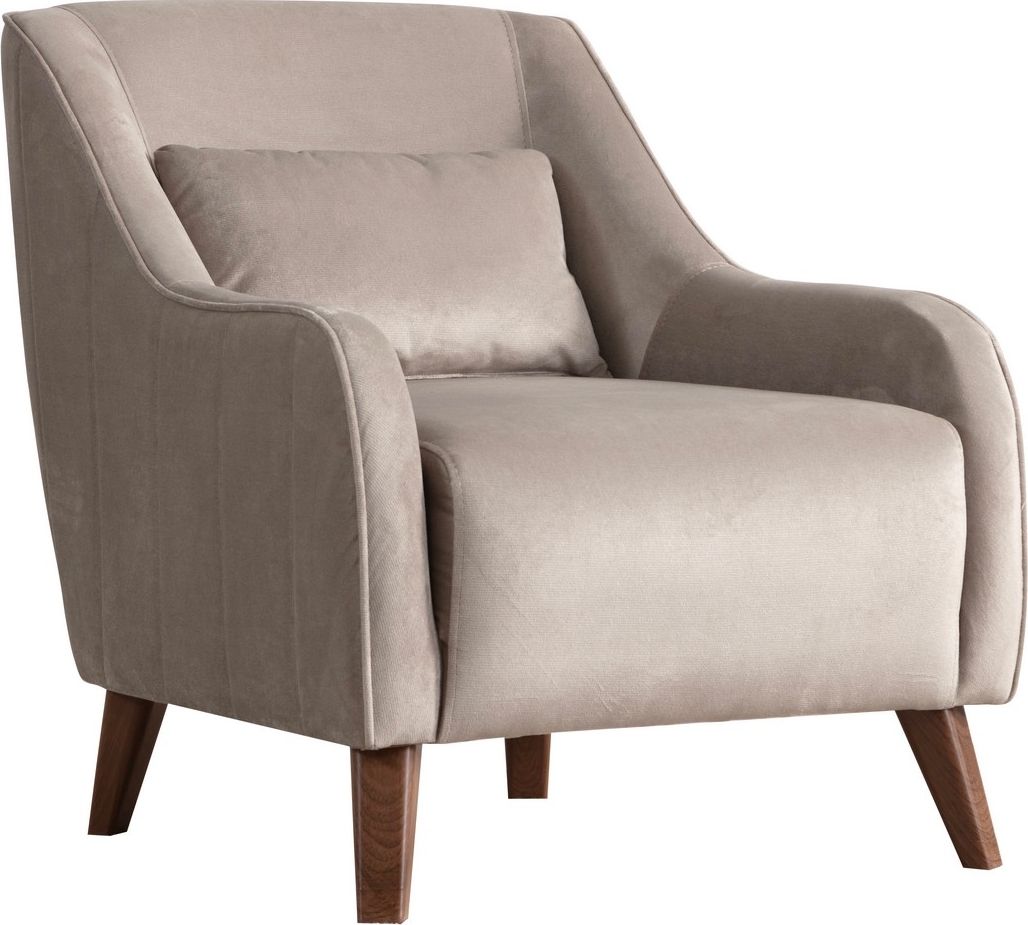 Soffa av bokträ och spånskiva med klädsel av polyester. Fasta sittdynor och portabla ryggdynor. Tyg går att kemtvätta.