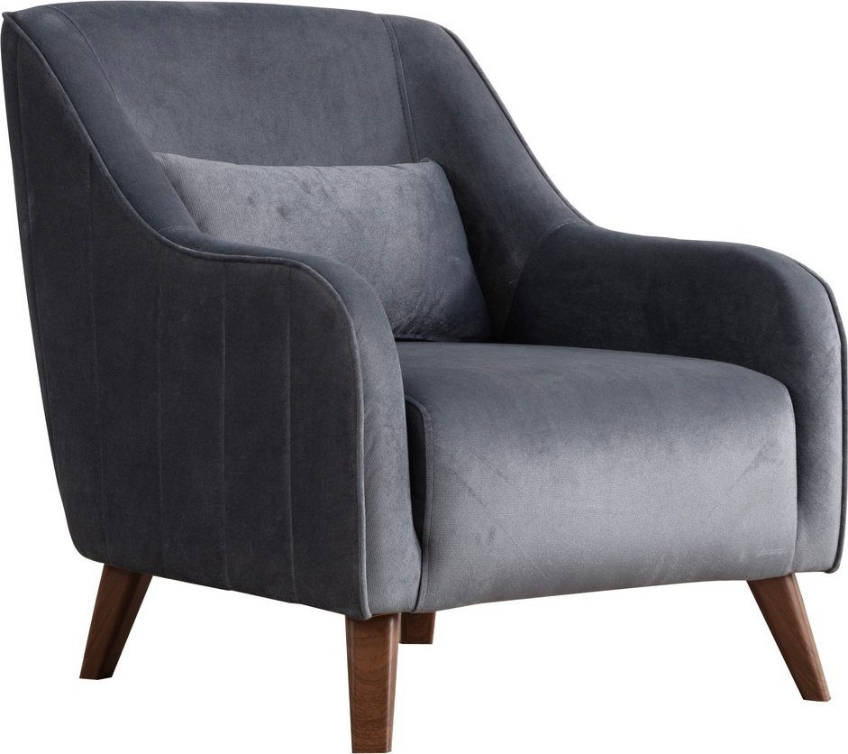 Soffa av bokträ och spånskiva med klädsel av polyester. Fasta sittdynor och portabla ryggdynor. Tyg går att kemtvätta.