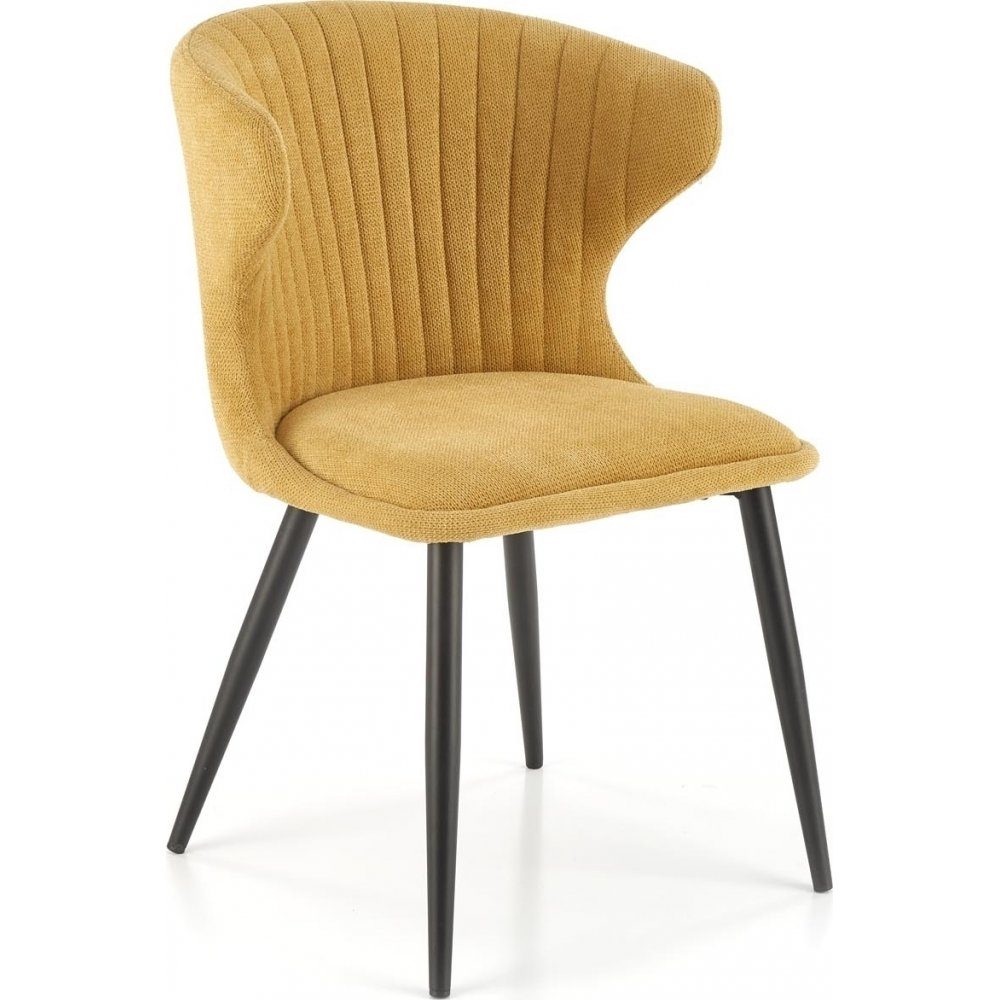 Matstol med underrede av pulverlackerad stål och klädsel av tyg.