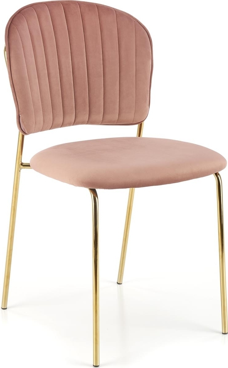 Matstol med klädsel av sammetstyg. Underrede av kromat stål.