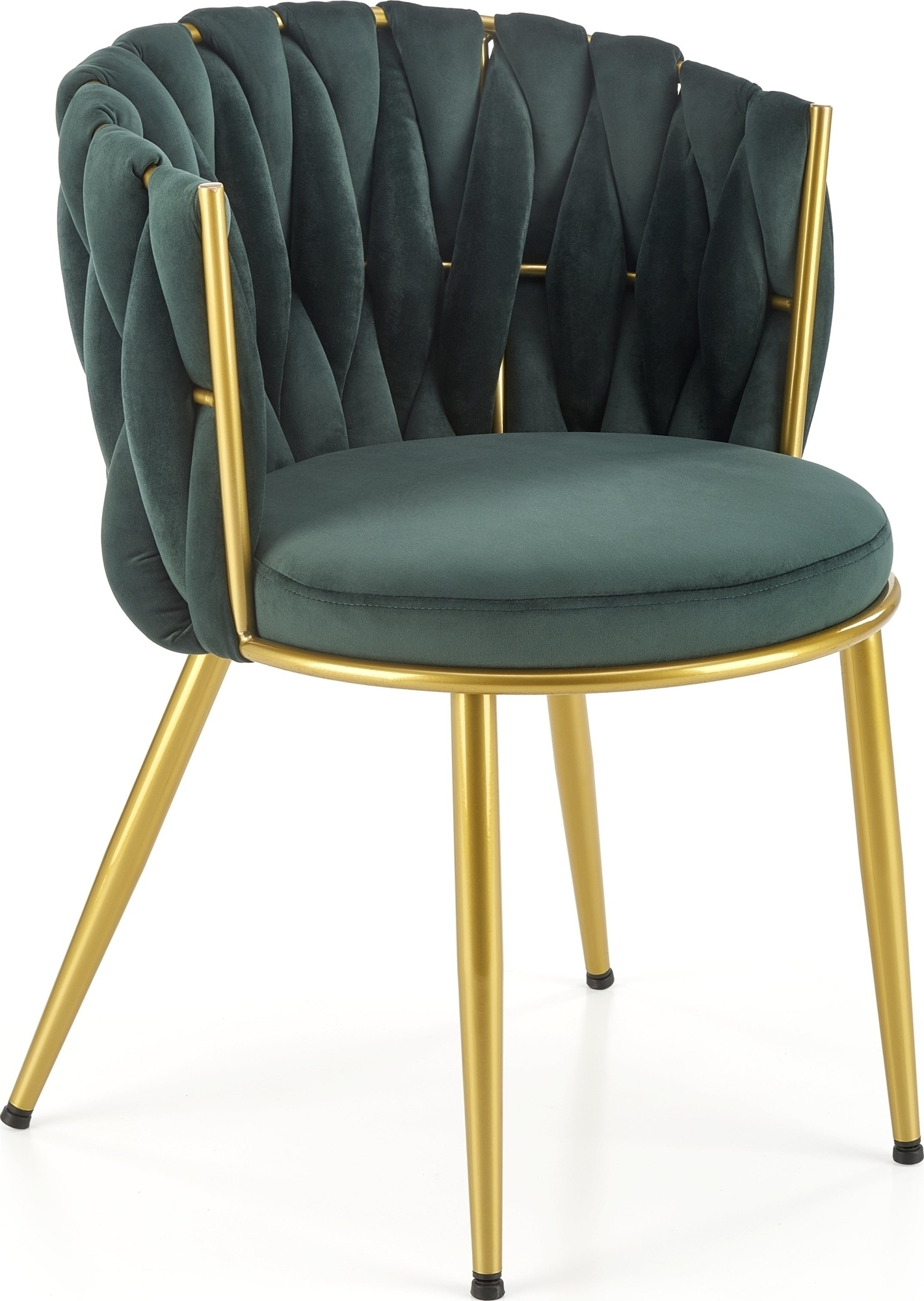 Matstol med underrede av pulverlackerad stål och klädsel av sammetstyg.