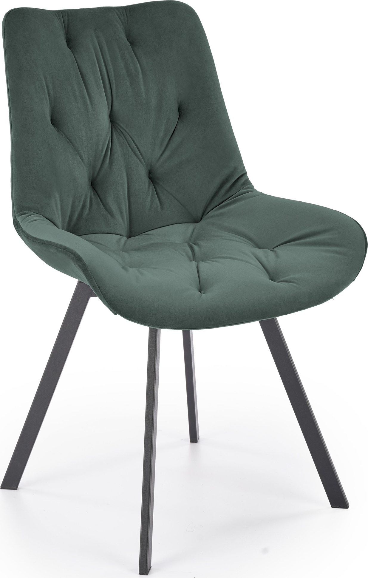 Matstol med underrede av pulverlackerad stål och klädsel av sammetstyg.