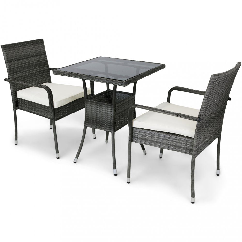 Mölle är ett stilrent och kompakt caféset för två personer, tillverkat i handvävd konstrotting av hög kvalitet. Setet innehåller ett kvadratiskt bord med glasskiva, två stolar samt sittdynor med bekväm tjocklek. Det nätta formatet gör möbelgruppen idealisk för balkongen, altanen eller ett mindre trädäck.