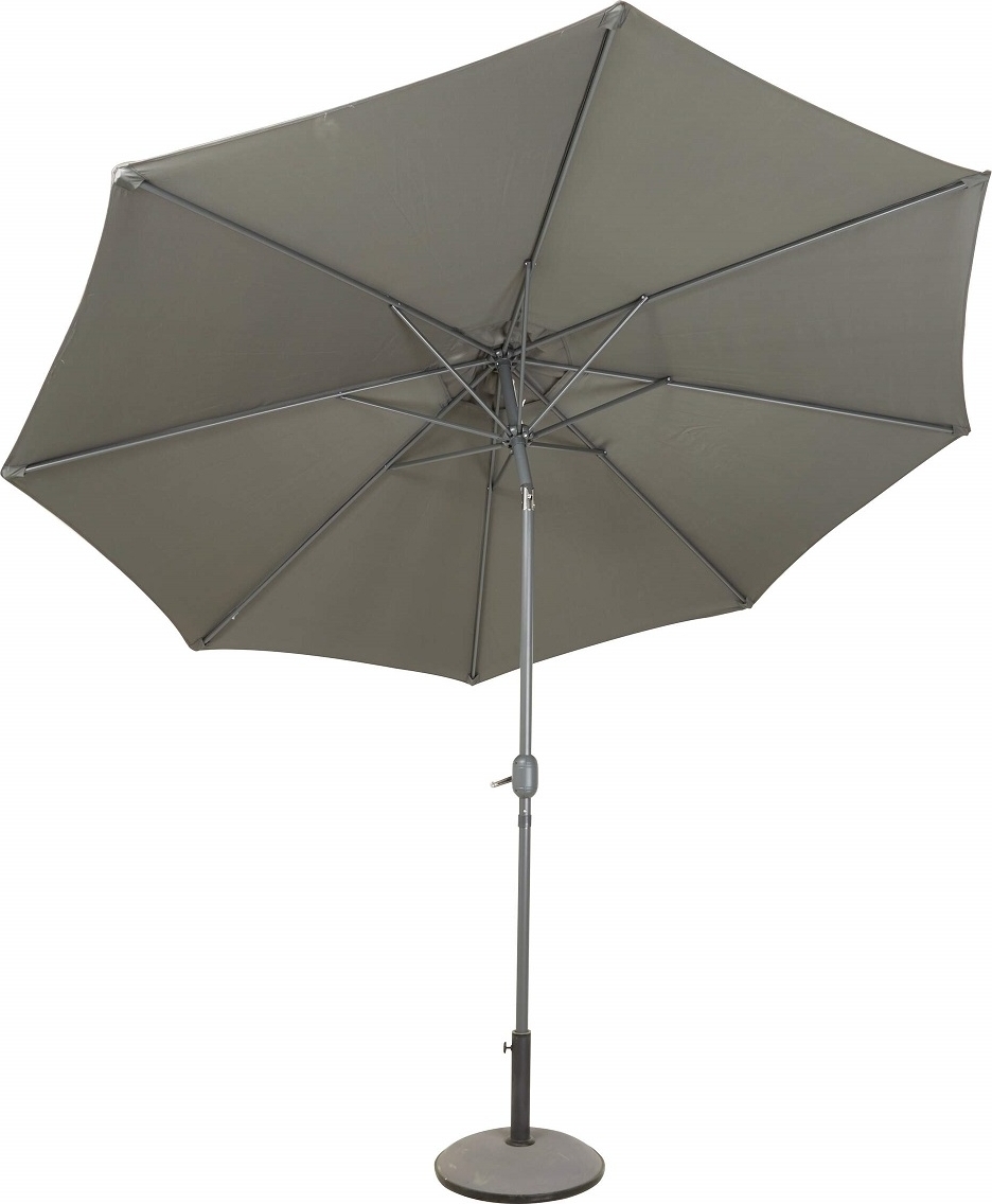 Parasoll Cali Grå . Det finns en klickfunktion där du kan sidställa parasollen. Enkel handvev gör den lättanvänd vid upp och nerfällning av parasollen.