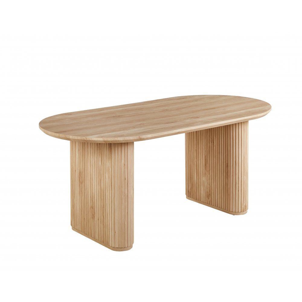 Callum matbord i modern design med bordsben i räfflat trä. Bordsskivan är tillverkad i MDF trä med ekfoliering. Matbordet har plats för 4-8 personer.