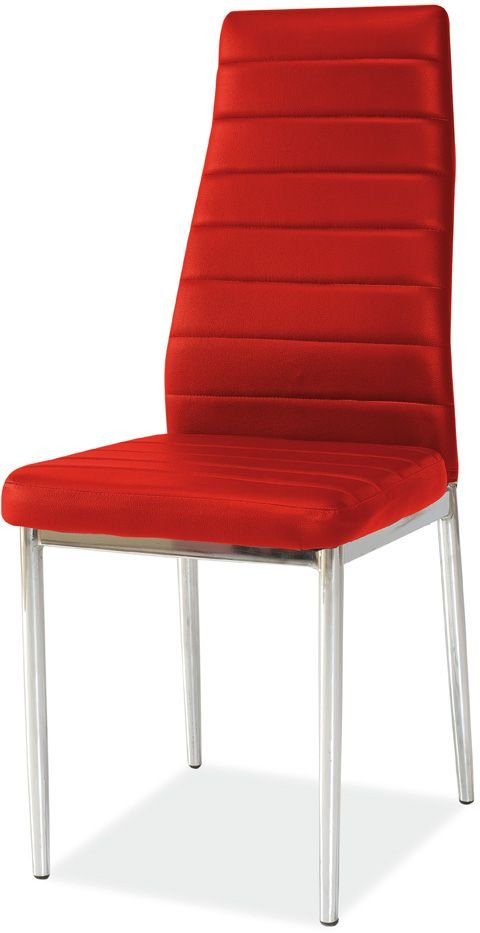 En härlig matstol med en modern design. Underredet är tillverkat av kromad metall och sitsen är klädd med ett mycket behagligt konstläder för maximal komfort.