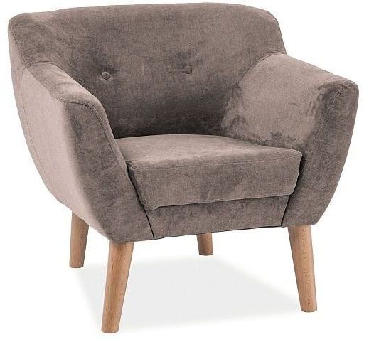 En snygg fåtölj med en robust design. Underredet är tillverkat av trä med bok utförande och sitsen är klädd med ett mycket behagligt tyg.