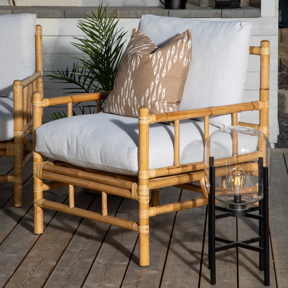 Naturfärgade loungestolar i bambu känns helt rätt för poolhänget! Möblera uteplatsen bekvämt, inbjudande och stilrent med en stol som imponerar. Cane loungestol skapar ett lugn i hela kroppen - harmoni! Skötselråd: Bambu är ett naturmaterial som är otrolig snyggt och trendigt, däremot inte särskilt väderbeständigt. Rottingmöbler ska helst inte stå utomhus utan bör placeras i torra utrymmen. Undvik stora temperaturskillnader. Enklaste rengöringen sker med fuktig trasa.