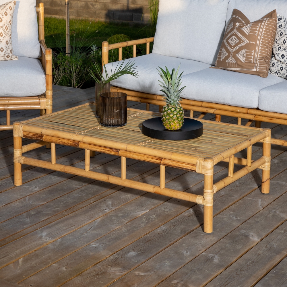Soffbordet Cane passar perfekt till dig som vill åt en känsla av naturen på uteplatsen. Det rektangulära soffbordet är tillverkat i bambu och rotting som har sin naturliga färg i en trendig beige och brun kulör. Dekorera med ljuslyktor och vaser för att fullända inredningen. Placera soffbordet tillsammans med soffan och fåtöljen i samma serie och du kommer att vara helt redo för sommarens sköna dagar!