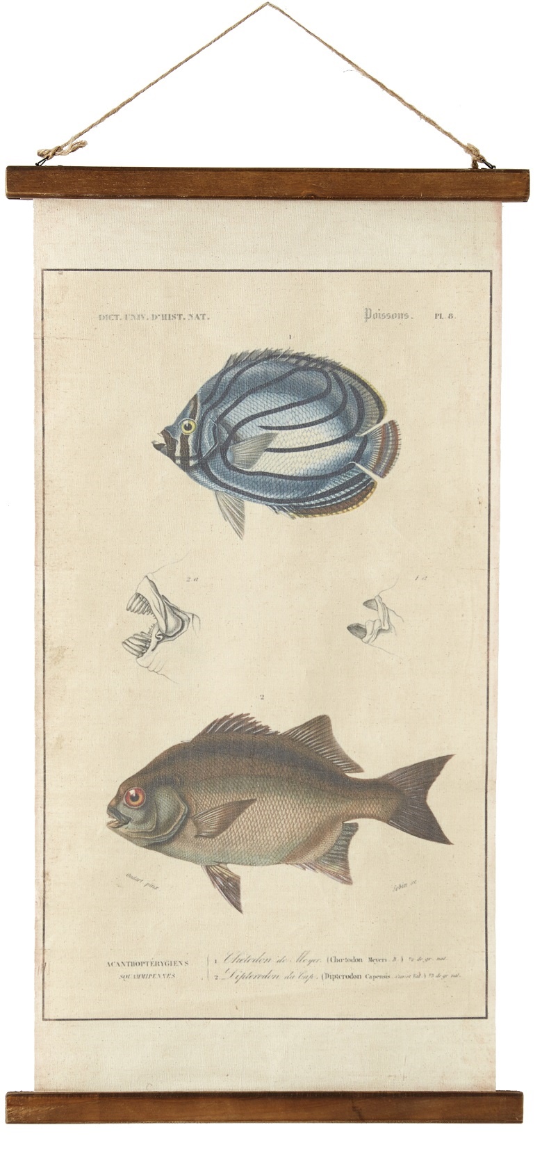 En vacker väggdekoration med fiskar . Hängs enkelt upp med en spik eller tavelkrok på väggen.