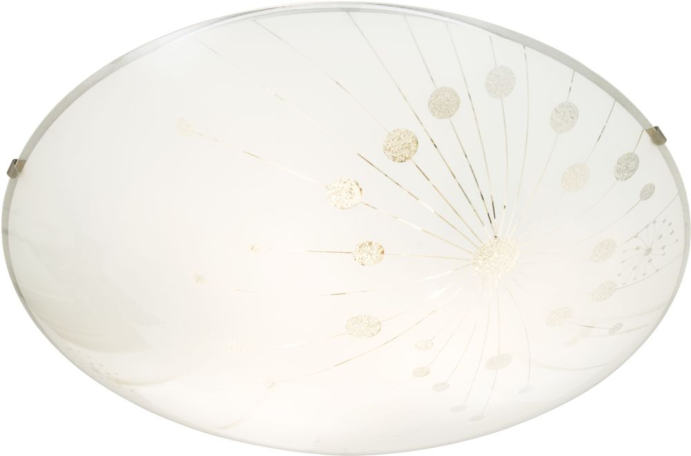 Taklampa i metall och vitt glas med textur. Monteras lätt i taket.