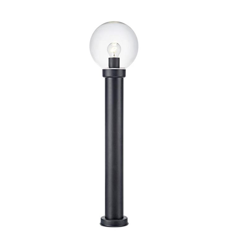 Caris stilrena pollare, perfekt till trädgården. IP-klassen är IP44 avsedd för fast, jordad installation. Pulverlackerad, rostfri svart metall och ljuskupa i klarglas. Stor lamphållare (E27). Max 40W glödljus eller motsvarande styrka i halogen, lågenergi eller LED. Ett mysigt sätt att lysa upp sin utemiljö på.