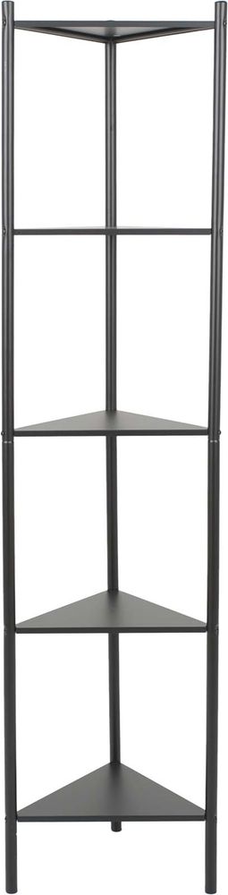Prydlig golvstående hylla med 4 hyllplan av svart askfanér, stabil konstruktion i svart metall. Formen gör att denna hylla passar extra bra i hörn.