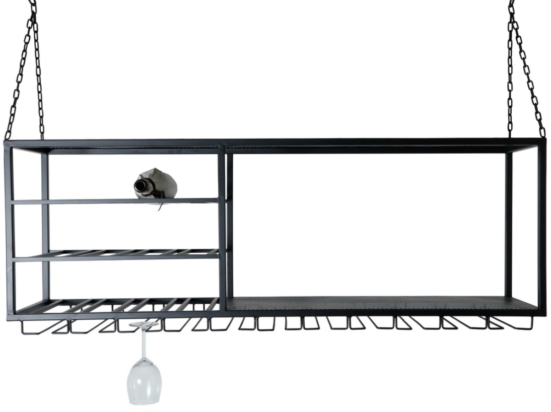 Cartier vinhylla med hängare för vinglas (Takhängt) - Svart metall