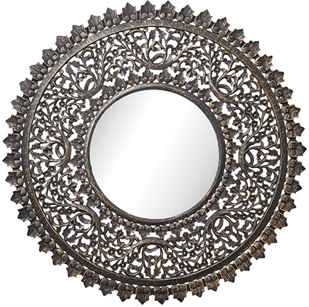 Carve rund spegel 115 cm - Antik träfärg