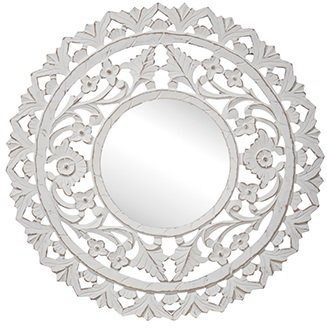 Rund spegel med dekorativ antikvit i gammal stil med handgjort utskuret mönster.