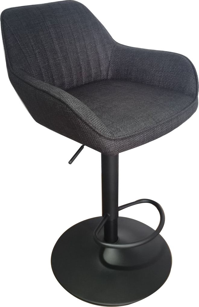 Elegant höj- och sänkbar barstol som erbjuder en sofistikerad kombination av mörkgrått tyg med ett elegant diagonalt mönster och ben i svart metall.