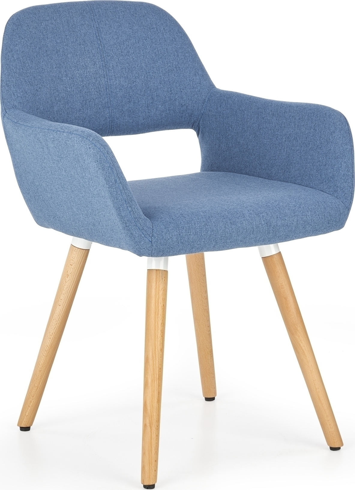 En härlig matstol med en modern design. Matstolen är tillverkad av solid trä med den naturliga trä looken på benen och sitsen är klädd med ett mycket behagligt tyg för maximal komfort.