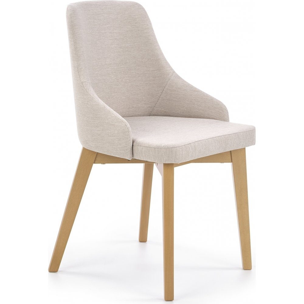 En härlig matstol med en stilren design. Matstolen är tillverkad av solid trä med den naturliga trä looken på benen och sitsen är klädd med ett mycket behagligt tyg för maximal komfort.