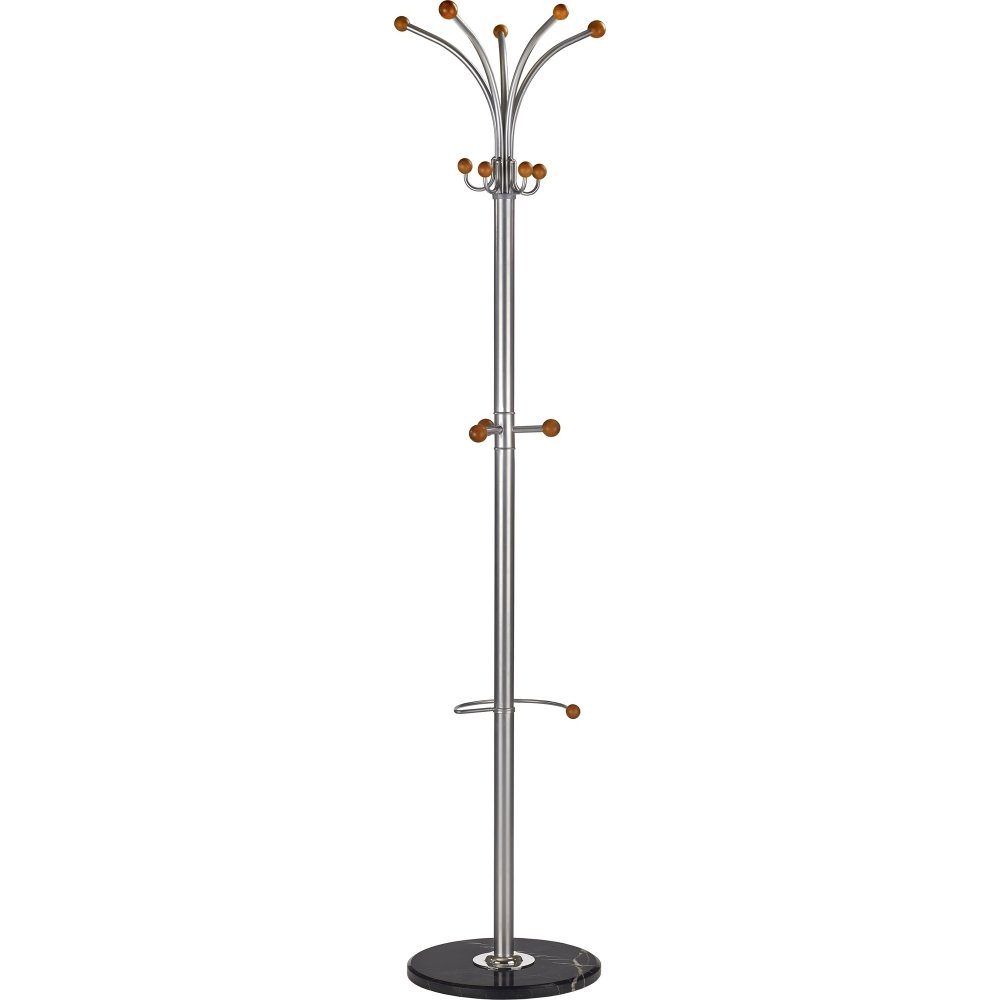 En snygg klädhängare med en elegant design. Tillverkad i kromad metall med detaljer i trä och en fot i mycket fin marmor. Klädhängaren passar perfekt in i hallen.