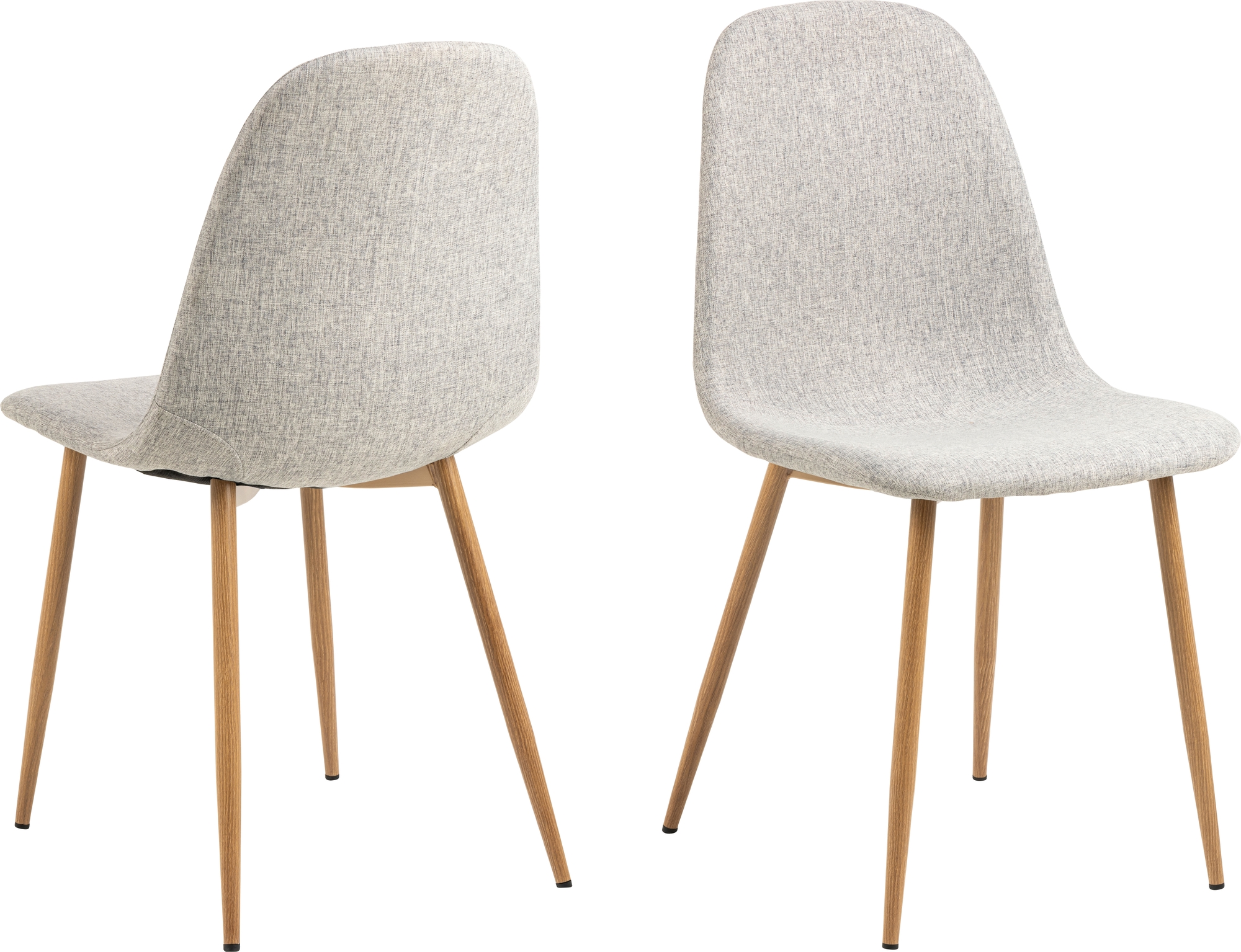 Matstol med klädsel av tyg och underrede av ekfolierad stål.