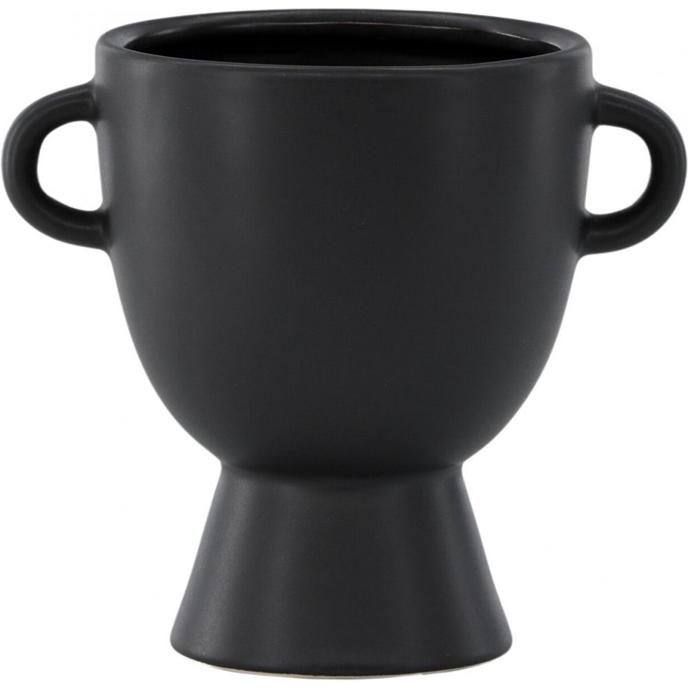 Upptäck skönheten och funktionaliteten hos Cent-serien, där varje kruka och vas är en unik konstnärlig skapelse. Välj din favorit bland de olika storlekarna och formerna. Cent-krukan, tillverkad i robust stengods och klädd i en elegant svart färg, är ett stilfullt tillskott till ditt hem. Med en höjd på 18 cm och en rund form blir Cent-krukan en perfekt plats för dina växter eller blommor. Dess välbalanserade design inkluderar ett handtag på varje sida, vilket ger en extra detalj till krukan. För att addera extra höjd och elegans har Cent en fot, vilket ger den en lyftande effekt och framhäver dess unika design. Den här krukan är inte bara en praktisk behållare utan även en konstnärlig detalj som kommer att ge en touch av karaktär till ditt hem. Elegans möter funktionalitet med Cent-krukan - en del av en serie som kombinerar tidlös design med modern estetik. Utforska serien och låt Cent bli en central del av din inredning.