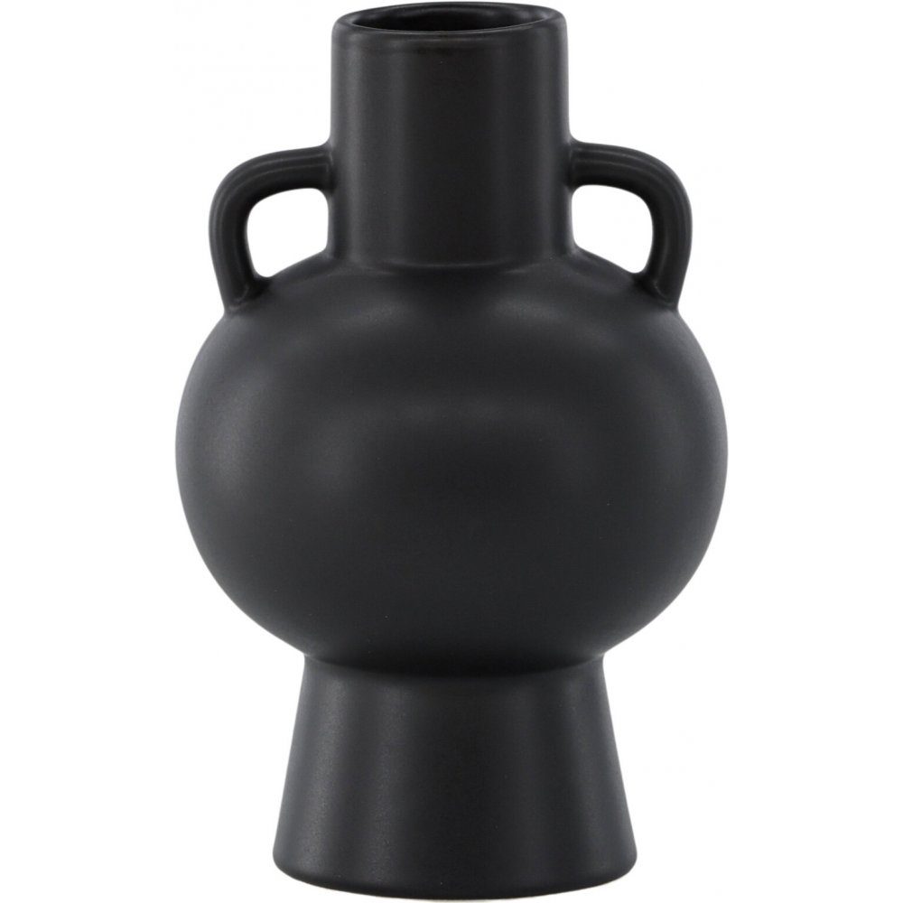 Elegant och stilren. Låt oss presentera Cent, din nya favoritvas som lyfter fram elegans och stil i varje rum. Med sin distinkta svarta färg och tillverkad i stengods är Cent inte bara en vas, utan en konstnärlig skapelse som kommer att förhöja atmosfären i ditt hem. Med en höjd på 24 centimeter och en generös öppning blir Cent idealisk för att framhäva skönheten i dina favoritblommor eller gröna växter. Vasens klotformade kropp ger den ett unikt utseende och gör den till en iögonfallande detalj i varje inredning. För att ytterligare förhöja dess design är Cent utrustad med två eleganta handtag, ett på varsin sida. Dessa handtag ger inte bara en praktisk funktion vid flyttning och arrangemang, utan lägger även till en subtil touch av raffinement. Oavsett om du placerar den i mitten av ditt matbord som ett imponerande centrum eller låter den smycka en hylla med sin närvaro kommer Cent att bli ett stilfullt komplement till ditt hem. Ge ditt utrymme en känsla av tidlös skönhet med Cent - vasen som förenar form och funktion på ett enastående sätt.