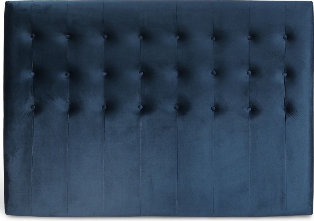 Sänggavel Centa i ett blått sammetstyg med en mjuk känsla. Snygg design med knappar för att ge ett lyxigt utryck i sovrummet.