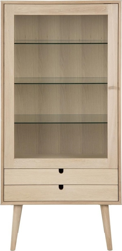 Vitrinskåp från vår Century serie. Stilren design med tre glashyllor och två lådor för förvaring. Tillverkad av massivt trä & MDF med ekfanér.