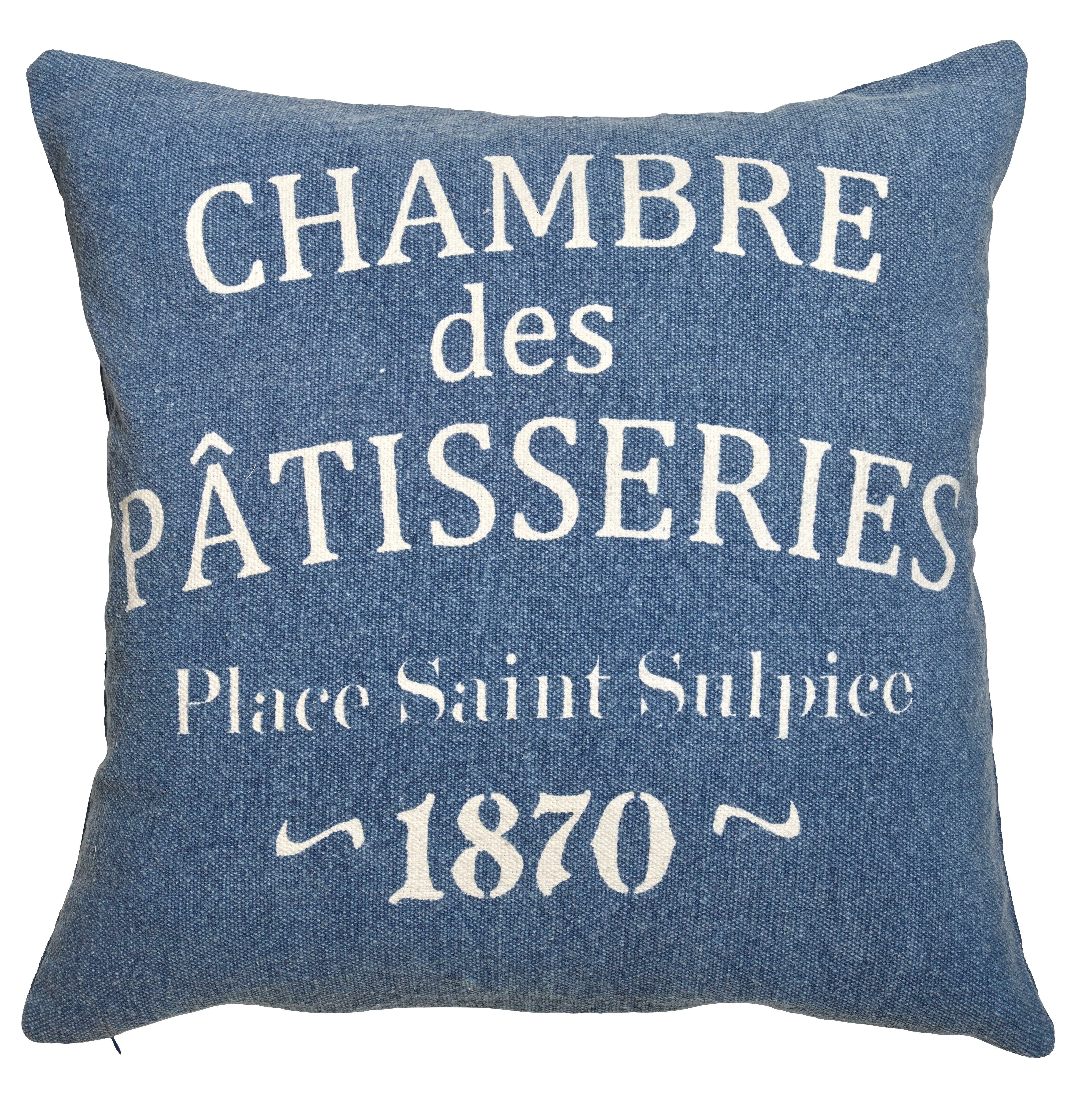 kuddfodral Chambre i pudriga färger med vit text. Passar utmärkt tillsammans med övriga kuddar och kuddfodral i vårt sortiment.