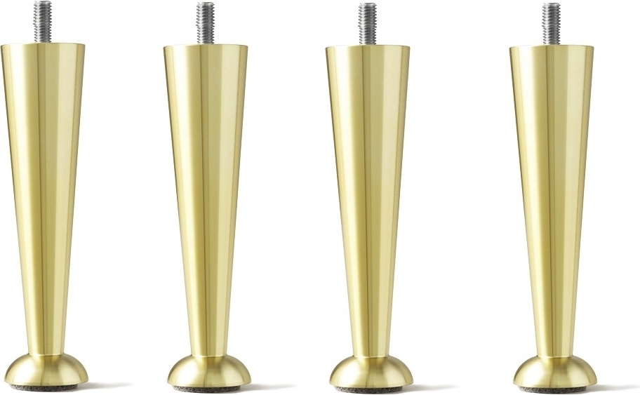 Sängben i 4-pack i massiv aluminium i lackad mässing. Exklusiva ben med standard gänga M8, passar till de flesta sängmärkena på marknaden.