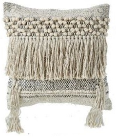 Prydnadskudde Chanta i naturfärg med Chanda-mönster och fransar. Mått 45x45 cm