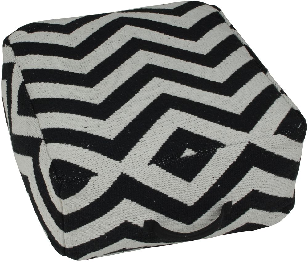 Puff i svart och vitt, klädd i tyg bestående av 90% bomull och 10% polyester. Stoppning av EPS-bollar för skön komfort.