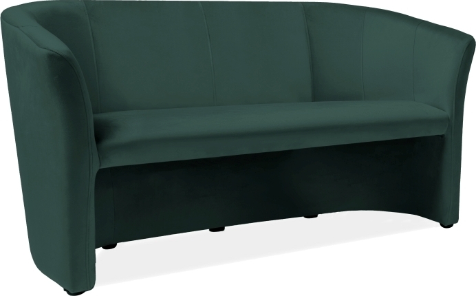 Soffa i plywood. Klädd med polyestertyg i sammetsimitation. Flamsäkert tyg.