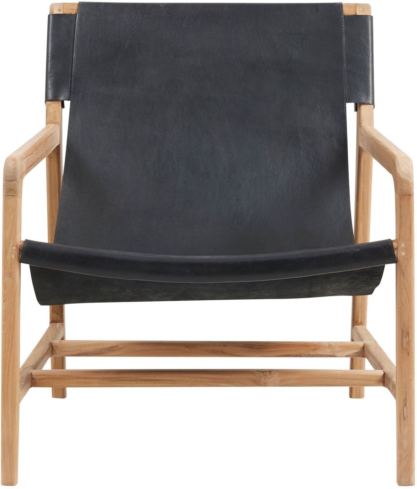 Charleston är en fåtölj med ram av massivt teakträ och sits av svart läder. Finns även i moccafärgat läder.