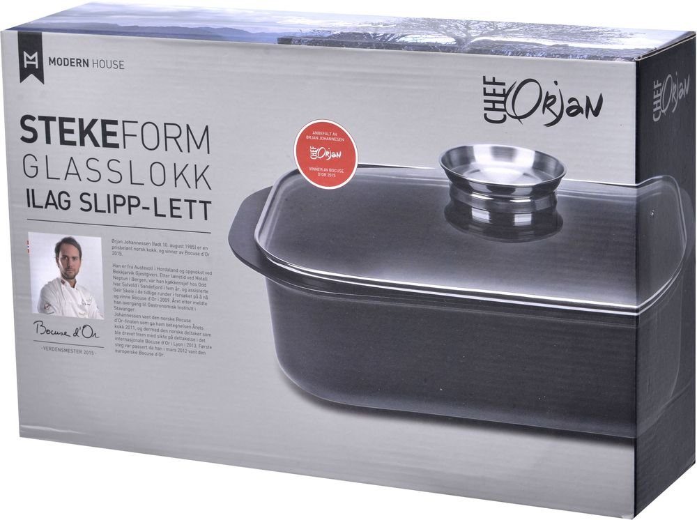 Chef Örjan är en stor och rymlig ugnsform i aluminium och stål med glaslock.