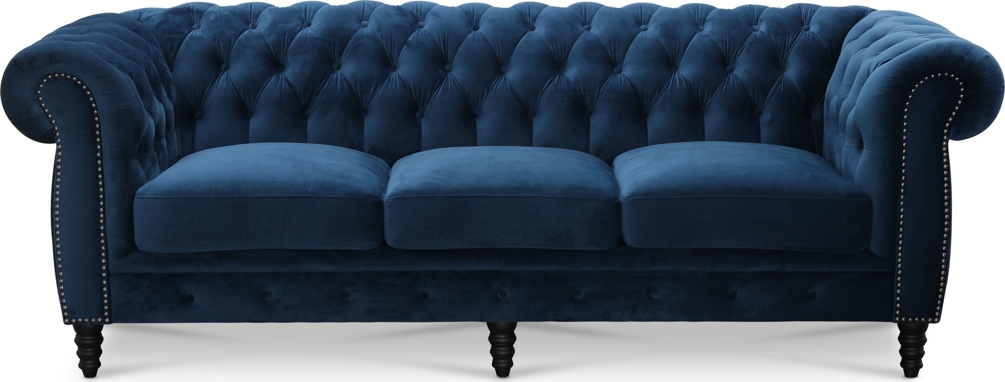 Cambridge 3-sits soffa i ett blått mjukt och skönt sammetstyg, med härlig komfort och god kvalite. Pocketspringfjädrar i sits för både lång hållbarhet och en fantastisk komfort.