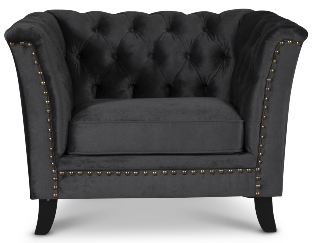 Chesterfield Liverpool soffor och fåtöljer har en modern chesterfield design med en slankare formgivning. Klädseln är en härlig och mjuk antracitgrå velour.