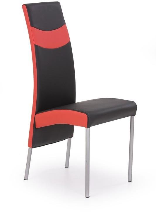 En häftig matstol med en modern design. Underredet är tillverkat i kromad metall med sitsen klädd i ett mycket behagligt svart & rött konstläder för maximal komfort.