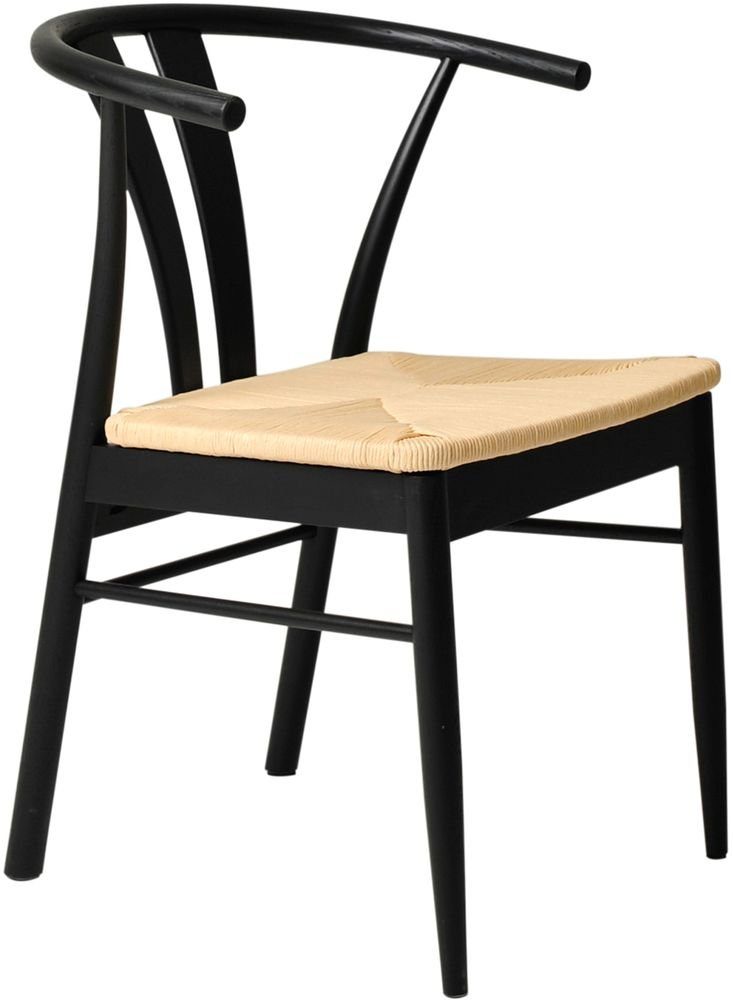 Stol med harmonisk utstrålning. Sitsen är flätad i beige, svart trästomme.