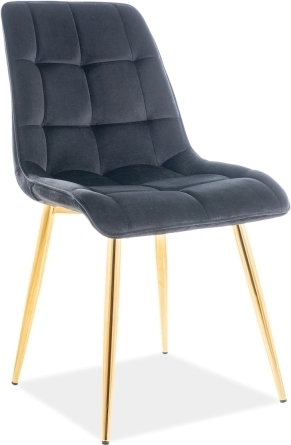 Matstol i metall. Klädd med tyg i sammetsimitation.