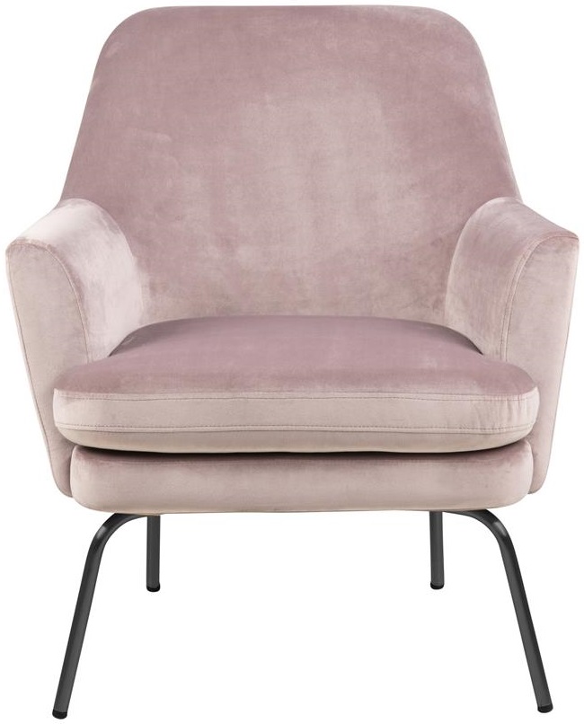 Bekväm fåtölj med en klassisk design. Stolen är täckt med rosa sammetstyg och benen är av svart pulverbehandlad metall. Fåtöljen passar in i flera olika rum, både för sig själv eller i grupp. Fåtöljen ingår i vår Durham serie.