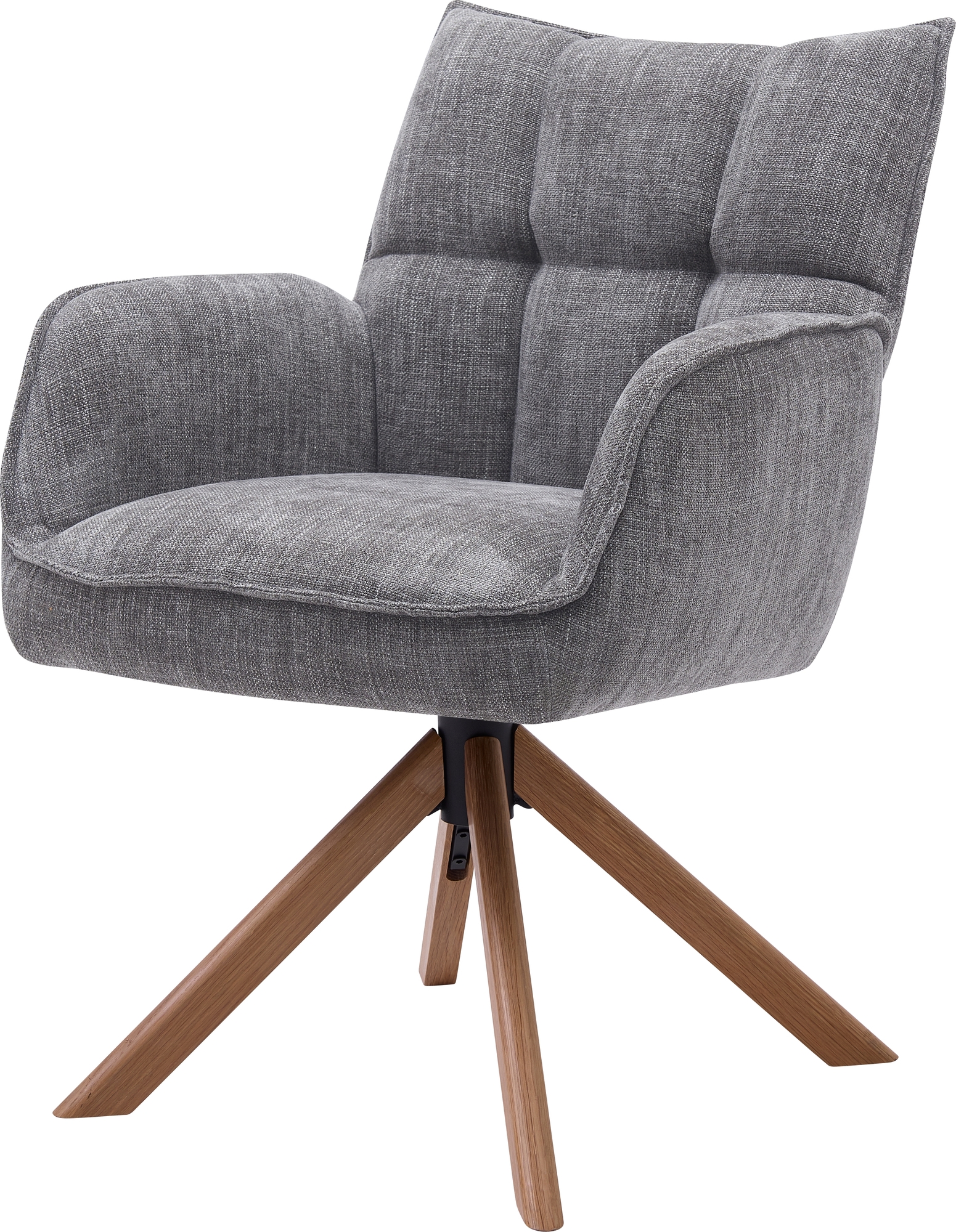 Karmstolen är designad för att kombinera enkelhet med robusthet och elegans. De integrerade armstöden och den bekväma stoppningen säkerställer en bekväm sittupplevelse, medan ekbenen lägger till en modernistisk och hållbar bas.