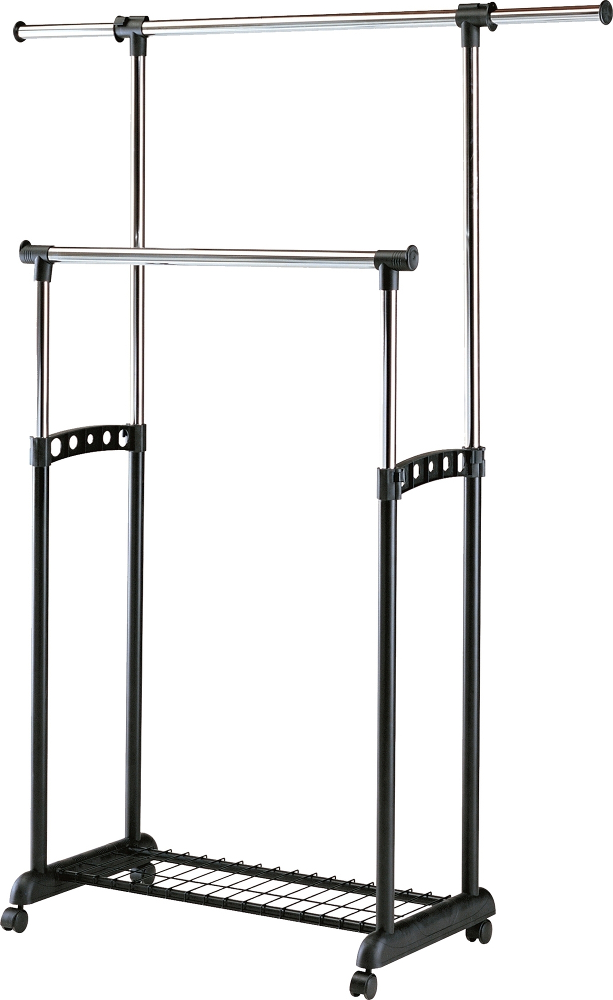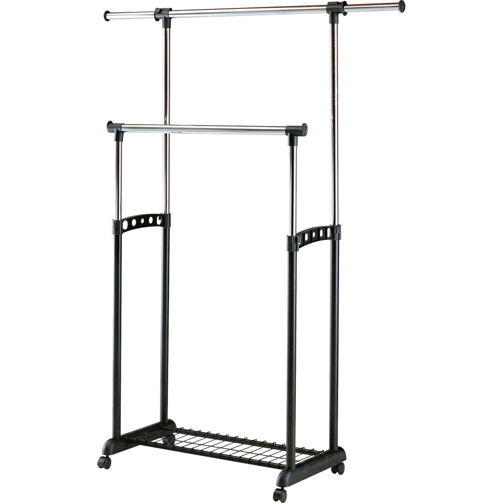 Praktiskt klädhängare med två justerbara klädstänger i metall och en hylla för placering av exempelvis skor. Lätt att förflytta med hjälp av hjulen undertill. Klädhängaren passar perfekt in på flera olika platser i hushållet och har många olika användningsområden.