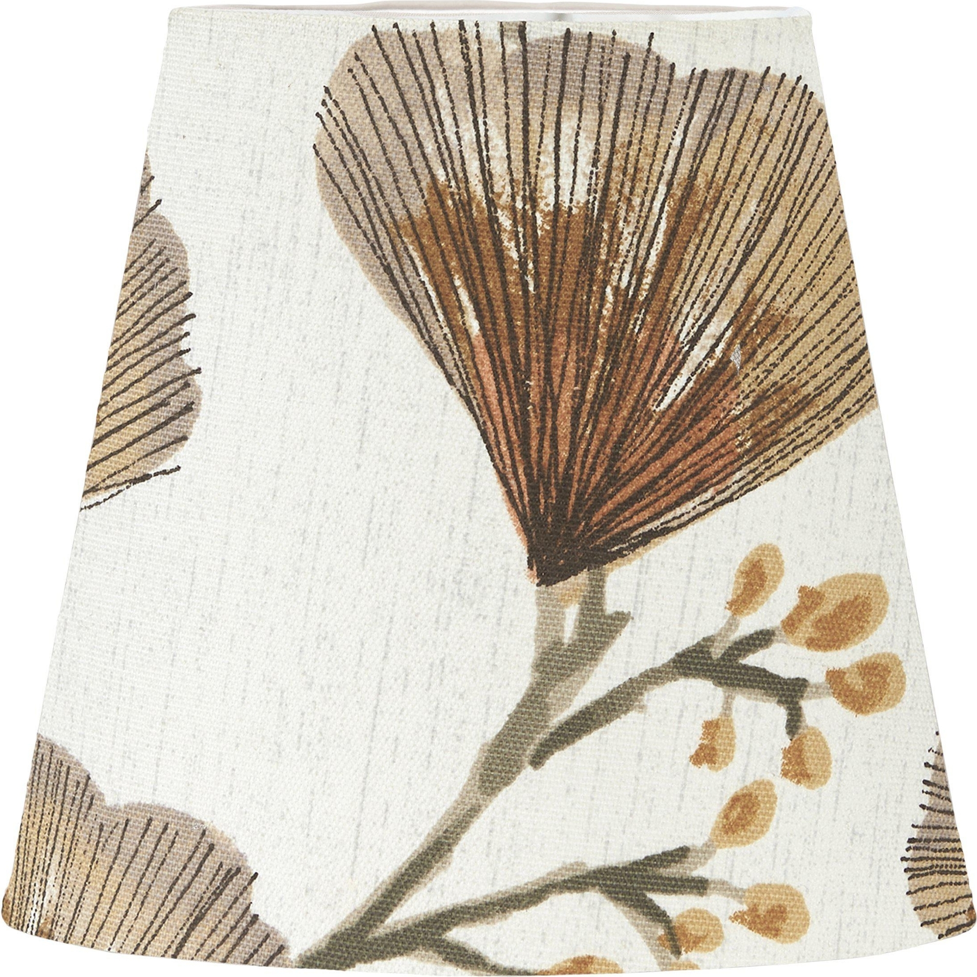 Lampskärm Cia i ett mönstrat bomullstyg. Lampskärmen har en ljus insida, ger ett behagligt sken och passar bra till golvfot, vägglampa, taklampa och lampfot.
