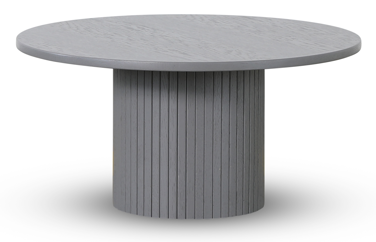 Ett elegant soffbord med en aktuell design. Det runda underredet är tillverkat i massiva eklameller i gråbetsat utförande med en massiv topp i gråbets ekfanèr.