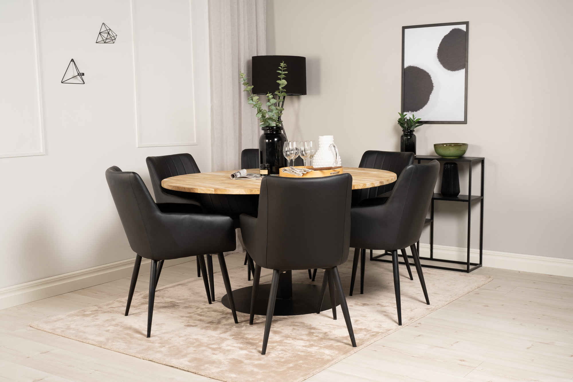 Cirebon matgrupp med 6 st Comfort stolar - Svart/Natur